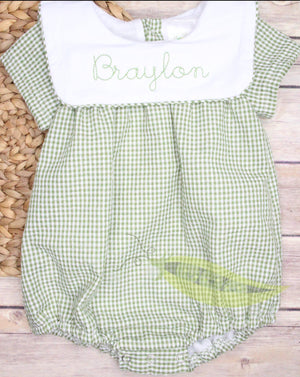 Please indicate in the personalization section the initials or name to be monogrammed below the design. Traditionally, monogram is First Name, Last Name, Middle Name. For example: Mary Elizabeth Smith - mSe. To avoid any confusion, please list full name, as well. We stitch exactly how it is typed.