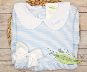 Please indicate in the personalization section the initials or name to be monogrammed below the design. Traditionally, monogram is First Name, Last Name, Middle Name. For example: Mary Elizabeth Smith - mSe. To avoid any confusion, please list full name, as well. We stitch exactly how it is typed.