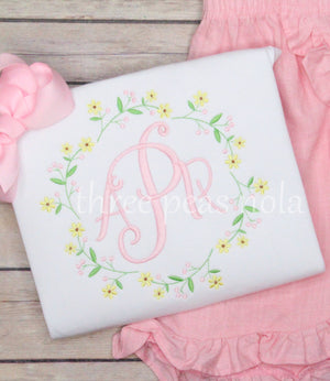 Please indicate in the personalization section the initials or name to be monogrammed below the design. Traditionally, monogram is First Name, Last Name, Middle Name. For example: Mary Elizabeth Smith - mSe. To avoid any confusion, please list full name, as well. We stitch exactly how it is typed.