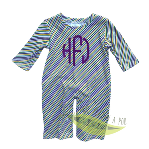 Please indicate in the personalization section the initials or name to be monogrammed below the design. Traditionally, monogram is First Name, Last Name, Middle Name. For example: Mary Elizabeth Smith - mSe. To avoid any confusion, please list full name, as well. We stitch exactly how it is typed.