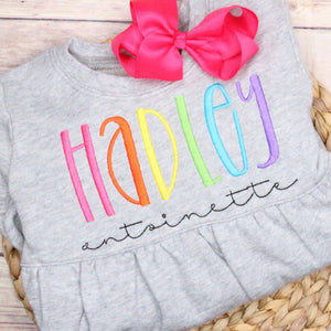 Please indicate in the personalization section the initials or name to be monogrammed below the design. Traditionally, monogram is First Name, Last Name, Middle Name. For example: Mary Elizabeth Smith - mSe. To avoid any confusion, please list full name, as well. We stitch exactly how it is typed.