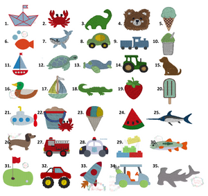 Please indicate in the personalization section the initials or name to be monogrammed below the design. Traditionally, monogram is First Name, Last Name, Middle Name. For example: Mary Elizabeth Smith - mSe. To avoid any confusion, please list full name, as well. We stitch exactly how it is typed.