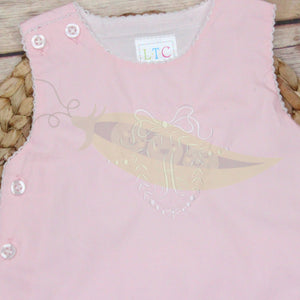 Please indicate in the personalization section the initials or name to be monogrammed below the design. Traditionally, monogram is First Name, Last Name, Middle Name. For example: Mary Elizabeth Smith - mSe. To avoid any confusion, please list full name, as well. We stitch exactly how it is typed.